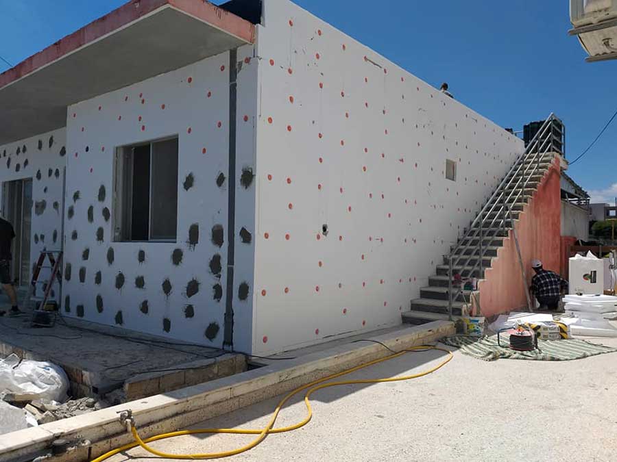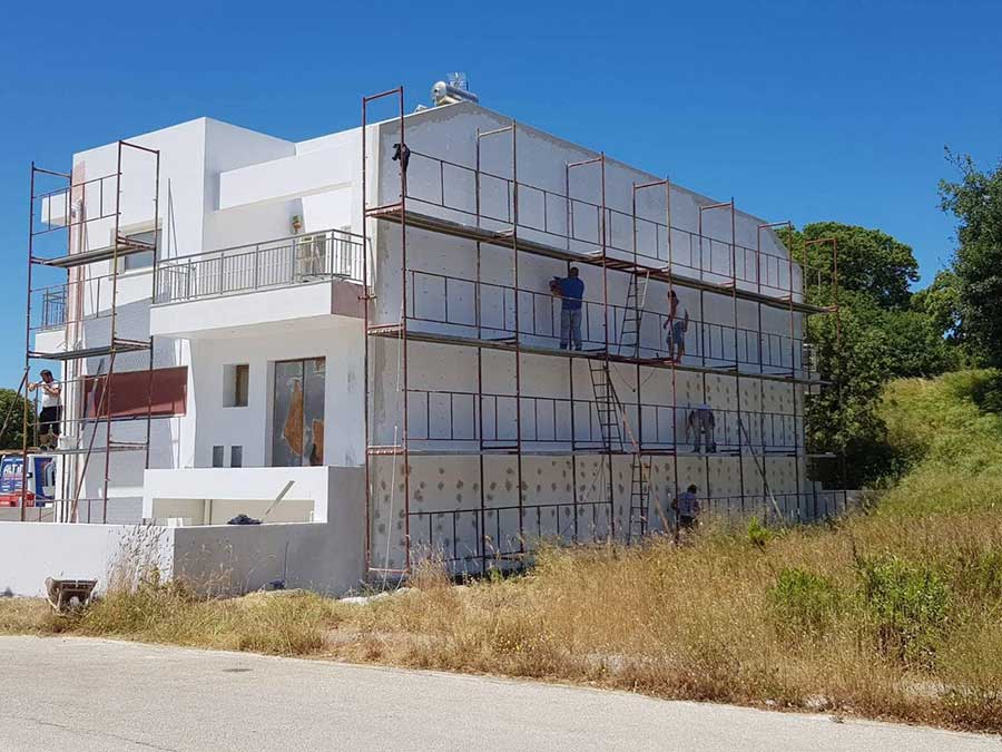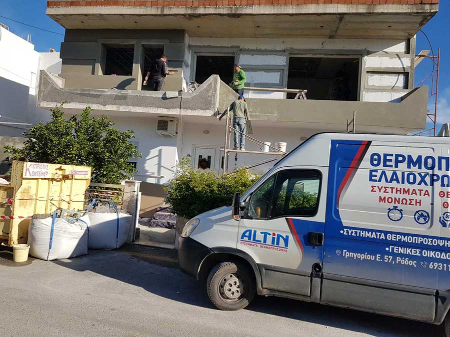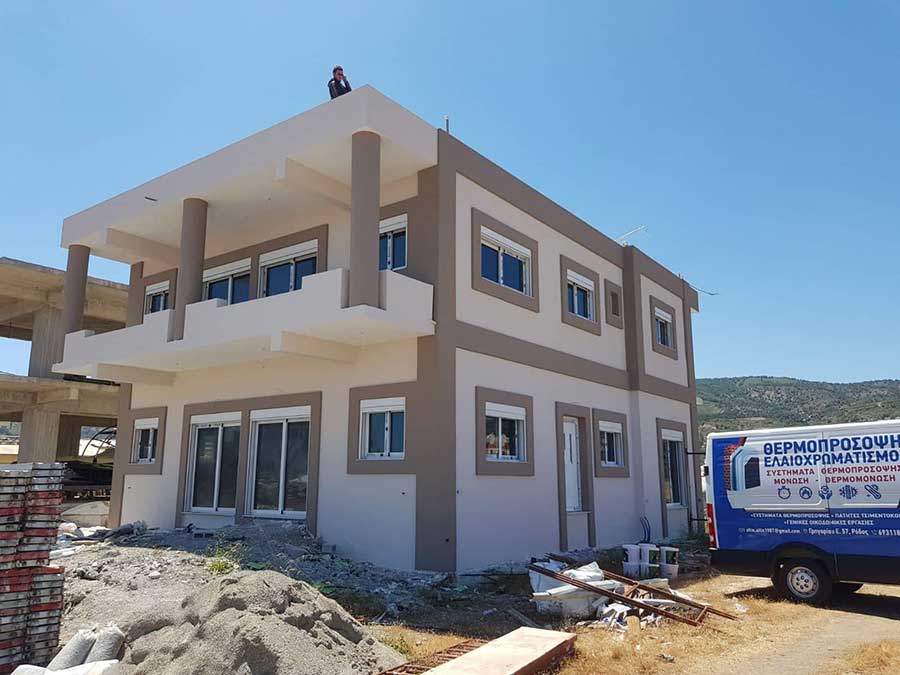 Η εταιρεία μας έχει υλοποιήσει, επιτυχώς, έργα θερμοπρόσοψης σε όλο το νησί της Ρόδου. Διαθέτουμε τον απαραίτητο εξοπλισμό και την τεχνογνωσία για την εφαρμογή μιας εγγυημένης θερμοπρόσοψης, σε οικίες και επαγγελματικούς χώρους, με άριστα αποτελέσματα.